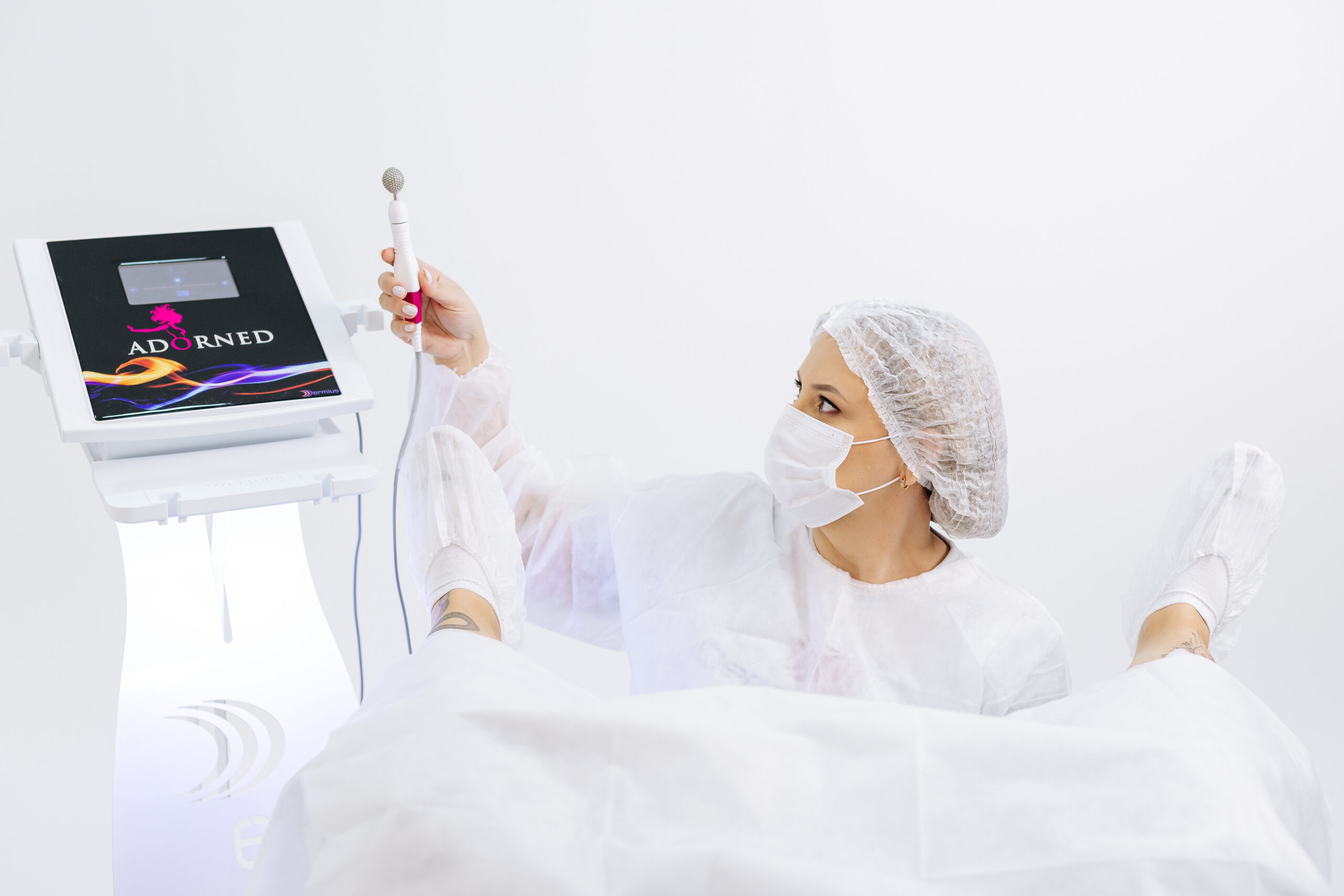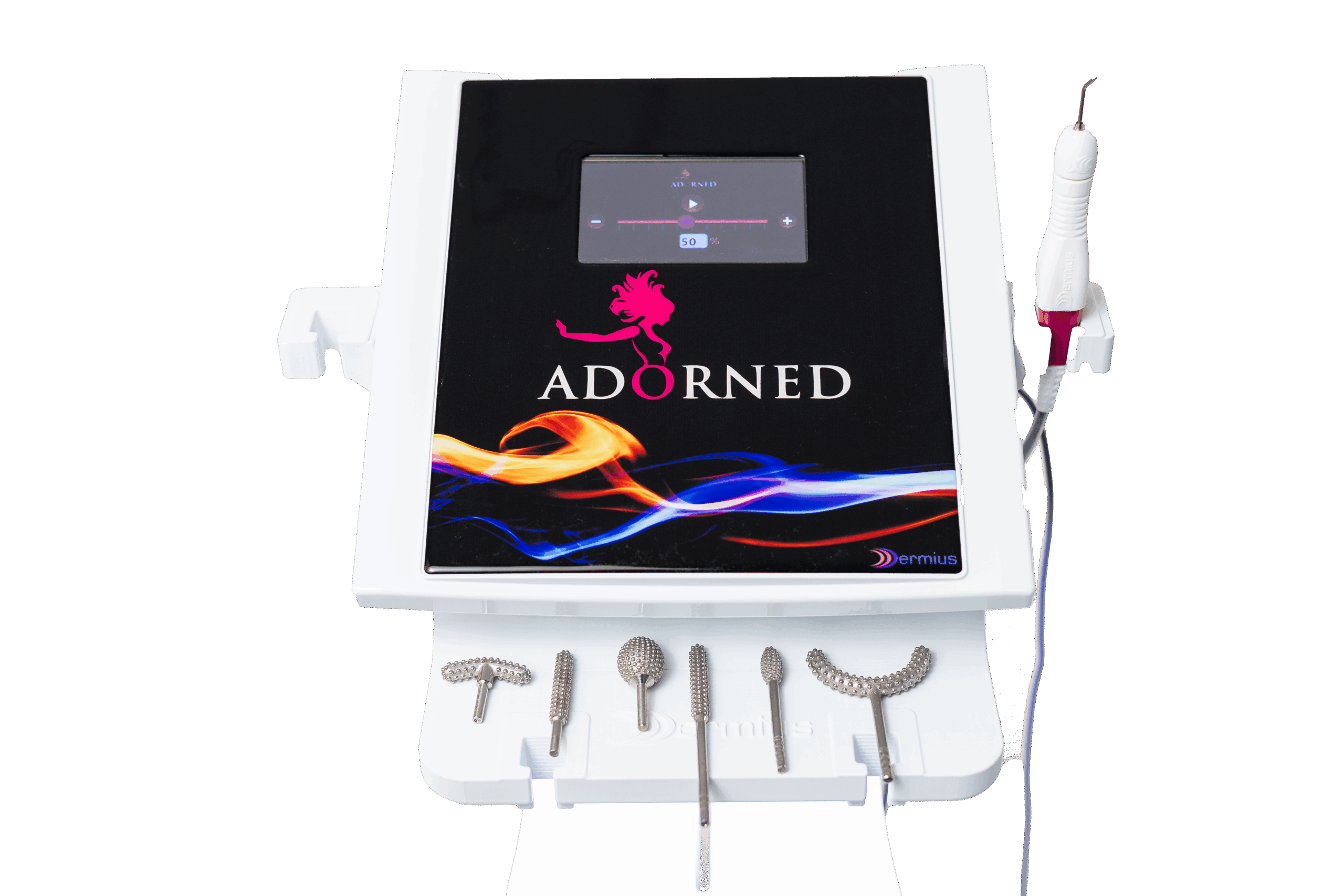 O ADORNED® é um equipamento que promove a retração dos tecidos e estímulo de colágeno através emissão de ondas elétricas triangulares de alta frequência, variáveis entre 3.0 Mhz. e 6.0 Mhz. desenvolvido para ser utilizado exclusivamente nas áreas de estética e funcionalidade genital.