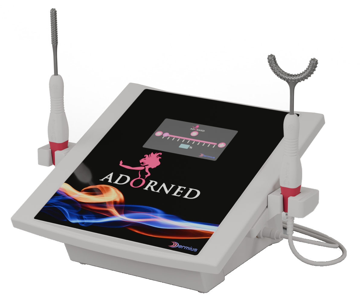 O ADORNED® é um equipamento que promove a retração dos tecidos e estímulo de colágeno através emissão de ondas elétricas triangulares de alta frequência, variáveis entre 3.0 Mhz. e 6.0 Mhz. desenvolvido para ser utilizado exclusivamente nas áreas de estética e funcionalidade genital. ONDAS ULTRASSÔNICAS: